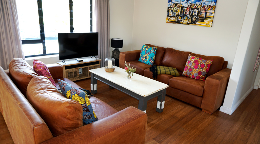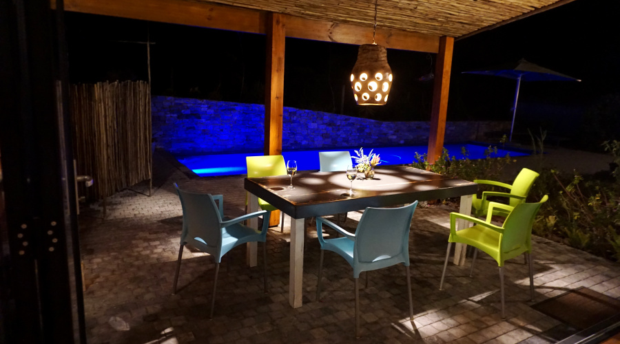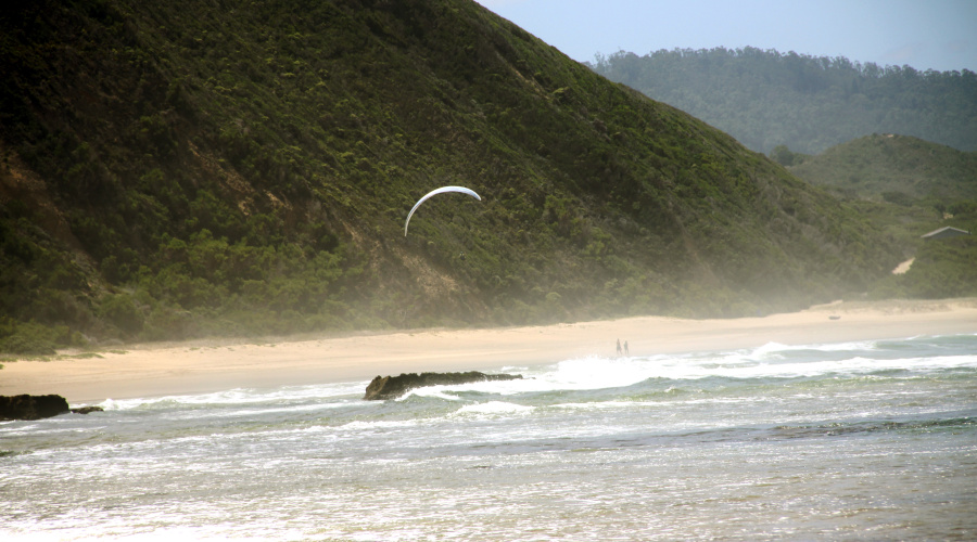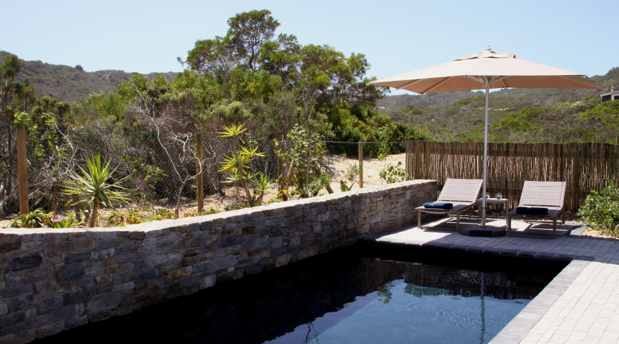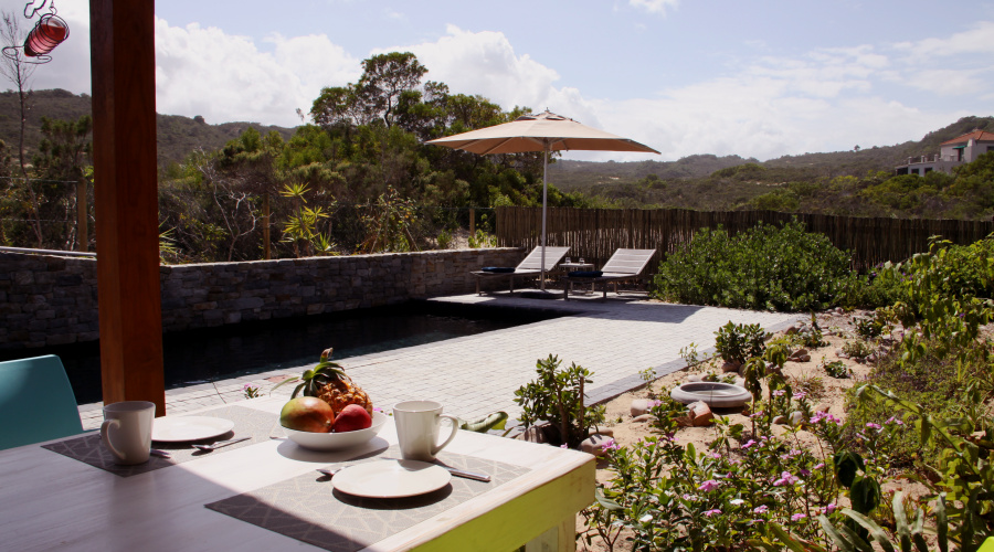 Das Haus wurde erst 2016 erbaut und praktisch und geschmackvoll eingerichtet. Der geräumige Wohnbereich mit offener Küche führt direkt über die Terrasse zum Pool und in den Garten. Das Schlafzimmer mit Doppelbett grenzt an das Bad mit bodengleicher Dusche und Badewanne. Ein Gäste-WC bietet weiteren Komfort. Der Bungalow-Wohnbereich verbindet in einem offenen Raum die Küche und den Essbereich mit dem Wohnzimmer. Die Küche überzeugt mit einer guten Ausstattung, einer separate Spülküche und einem direkten Zugang in die Garage. Die überdachte Terrasse hat einen großen landestypischen Grill (Braai). Über den Swimming Pool (10 x 3 m, 1,50 m tief) und Garten blickt man direkt in die Dünen und genießt dort den Sonnenuntergang mit leisem Wellenrauschen. Das Haus bietet Platz für 2 Personen. WLAN, Außengrill und Innenkamin sind vorhanden. Es gibt die Möglichkeit, den vorhandenen Flachbildfernseher (42") zu nutzen. Eine Soundbar mit Bluetooth Funktion steht ebenfalls bereit.Es wurden Solarkollektoren zusammen mit einem 4 KW Stromspeicher installiert, die das Haus, im Falle der leider häufigen Stromausfälle, mit ausreichend Energie versorgen. Es ist nur ein kurzer Spazierweg zum Cola-Beach, der kilometerlang, fantastisch breit und fast menschenleer ist. In ca. 1 km Entfernung entlang der Strandstraße gelangt man an die Lagune. Hier kann man in seichtem Wasser sicher schwimmen. Auf diesem Weg kommt man an dem angesagten Strandrestaurant und Surfer Treffpunkt "Pili Pili" vorbei. Sedgefield ist ein sehr relaxter Ort und gibt sich selber die Bezeichnung "Slow Town", der Insidertipp zwischen den touristischen Hotspots Wilderness und Knysna.