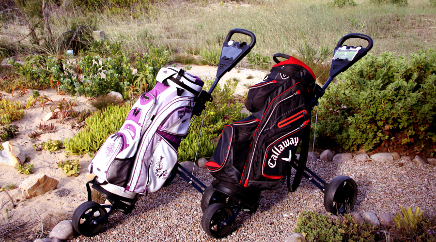 2 Golf-Trolleys mit Bags stehen frei zur Verfügung.